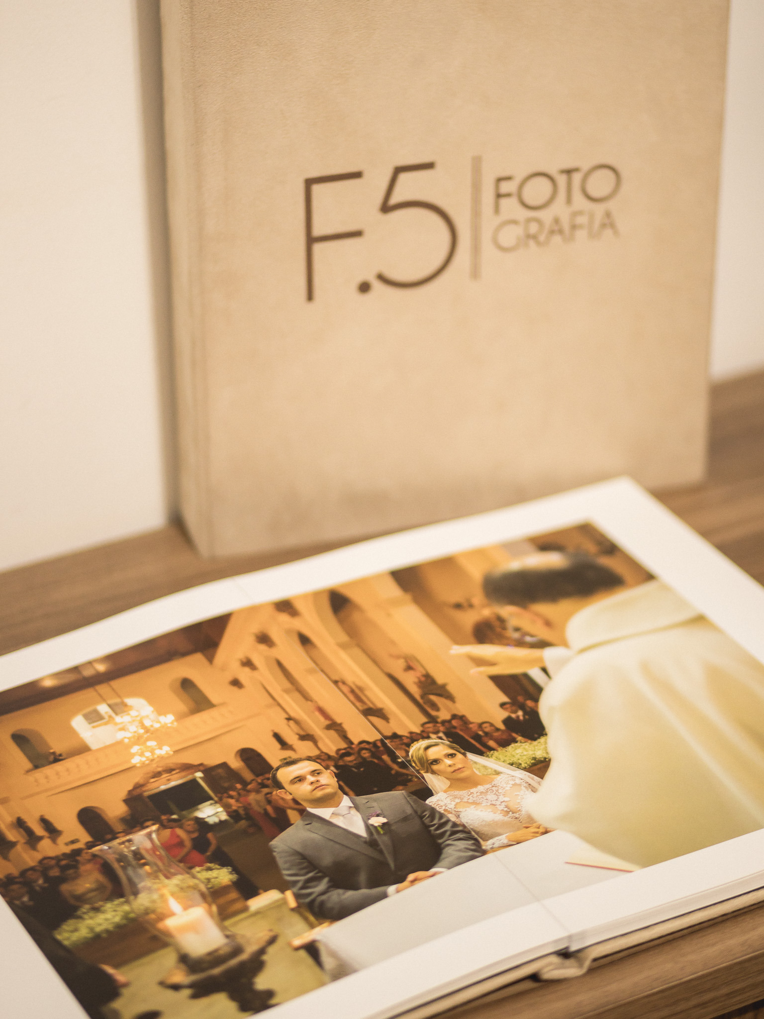 50 páginas, com abertura 180°, papel fotográfico grosso de 700 g/m², capa impressa e estojo.