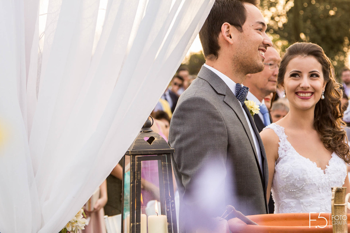 Casamento Caroline e Ricardo, sorrisos em meio a cerimônia, em Nova Resende - MG.